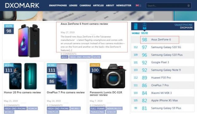 Dxo前置鏡頭排名更新 華碩zenfone 6意外登頂榜首 每日頭條